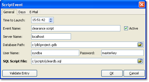 Time to Backup Manager application was created to manage scheduled events on local and remote servers. When connected to scheduler service you can manage add/edit/delete events like database backup, stored procedure run or SQL Script run.